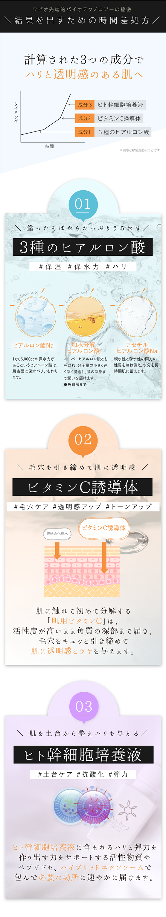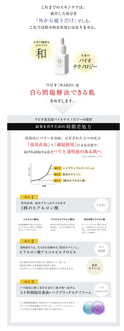 成分にこだわりのある美容液のため、 どうしても説明文が長くなり文字が多めに なっていたパーツを、写真やイラストを効果的に 使い、ブロック配置して見やすく改修。